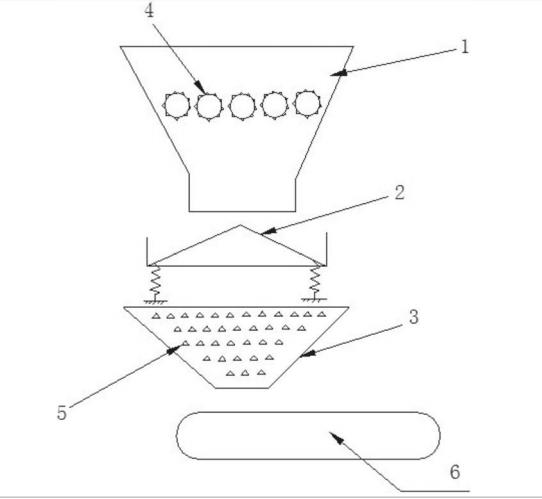 新型有機污染場地修復(fù)設(shè)備,包括土壤破碎篩分設(shè)備、篩分勻料振動篩和土壤熱脫附設(shè)備,土壤破碎機構(gòu)為上、下貫通的倒梯形腔體結(jié)構(gòu),所述倒梯形腔體結(jié)構(gòu)內(nèi)部設(shè)置多組并排設(shè)置的嚙合破碎齒輪,所述篩分勻料振動篩設(shè)置在土壤破碎機構(gòu)的出料口下方,所述土壤熱脫附倉的進料口對應(yīng)設(shè)置在篩分勻料振動篩的下方。