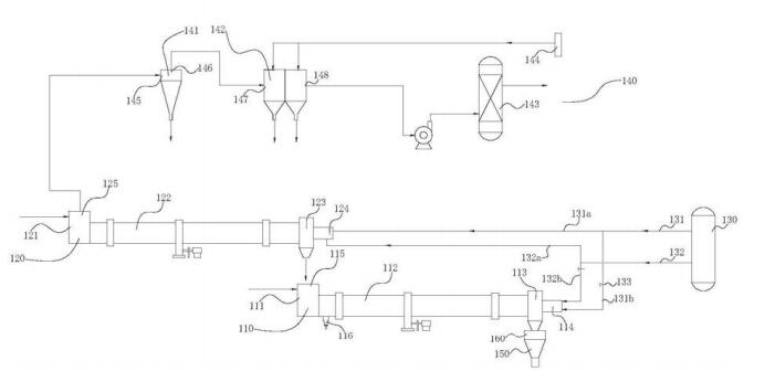 土壤熱解析設(shè)備包括低溫?zé)峤馕G系統(tǒng)、高溫?zé)峤馕G系統(tǒng)和燃?xì)馊紵到y(tǒng)。低溫?zé)峤馕G系統(tǒng)包括低溫進(jìn)料斗、低溫?zé)峤馕G、低溫出料斗和低溫燃?xì)膺M(jìn)口,低溫進(jìn)料斗與低溫燃?xì)膺M(jìn)口分別設(shè)置在低溫?zé)峤馕G的兩端,低溫出料斗靠近低溫燃?xì)膺M(jìn)口設(shè)置,低溫燃?xì)膺M(jìn)口與燃?xì)馊紵到y(tǒng)連接。