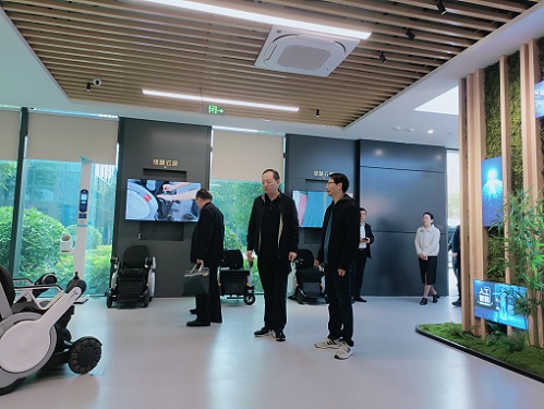 在一層科技康復(fù)輔具展示廳,省輔具中心副主任劉天明向來客介紹福建省委、省政府高度重視科技助殘工作,省殘聯(lián)黨組聚焦殘疾人需求,立足“科技型、智能型、數(shù)字化”定位,建設(shè)科技康復(fù)輔具展示廳,展示殘疾人輔具產(chǎn)品和服務(wù)高科技、智能化、數(shù)字化成果。到訪客人饒有興致地了解福建輔具企業(yè)生產(chǎn)的智能化電動(dòng)椅、智能護(hù)理床、老年健康監(jiān)測(cè)用品等高科技輔具,通過交流初步了解福建省輔具產(chǎn)業(yè)發(fā)展現(xiàn)狀。