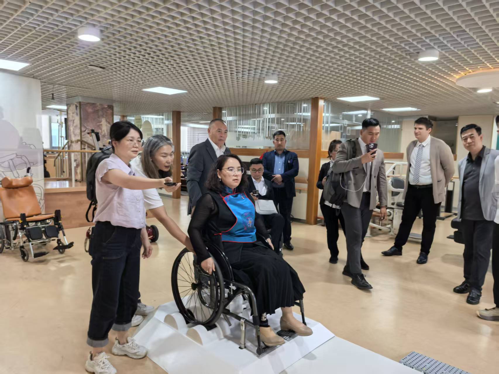 ? ? 代表團(tuán)還參觀了中國殘疾人輔助器具展示廳,重點了解國產(chǎn)輪椅、兒童康復(fù)輔具、居家無障礙設(shè)施、視力與聽力輔助器具等產(chǎn)品的研發(fā)理念、技術(shù)特點及應(yīng)用場景,并親身體驗了部分輔助器具的使用功能。奧特根?薩仁楚倫議員對快速發(fā)展的中國殘疾人事業(yè)給予高度評價,期待雙方加強(qiáng)殘疾人事業(yè)交流與合作,共同推動國際殘疾人事業(yè)發(fā)展。